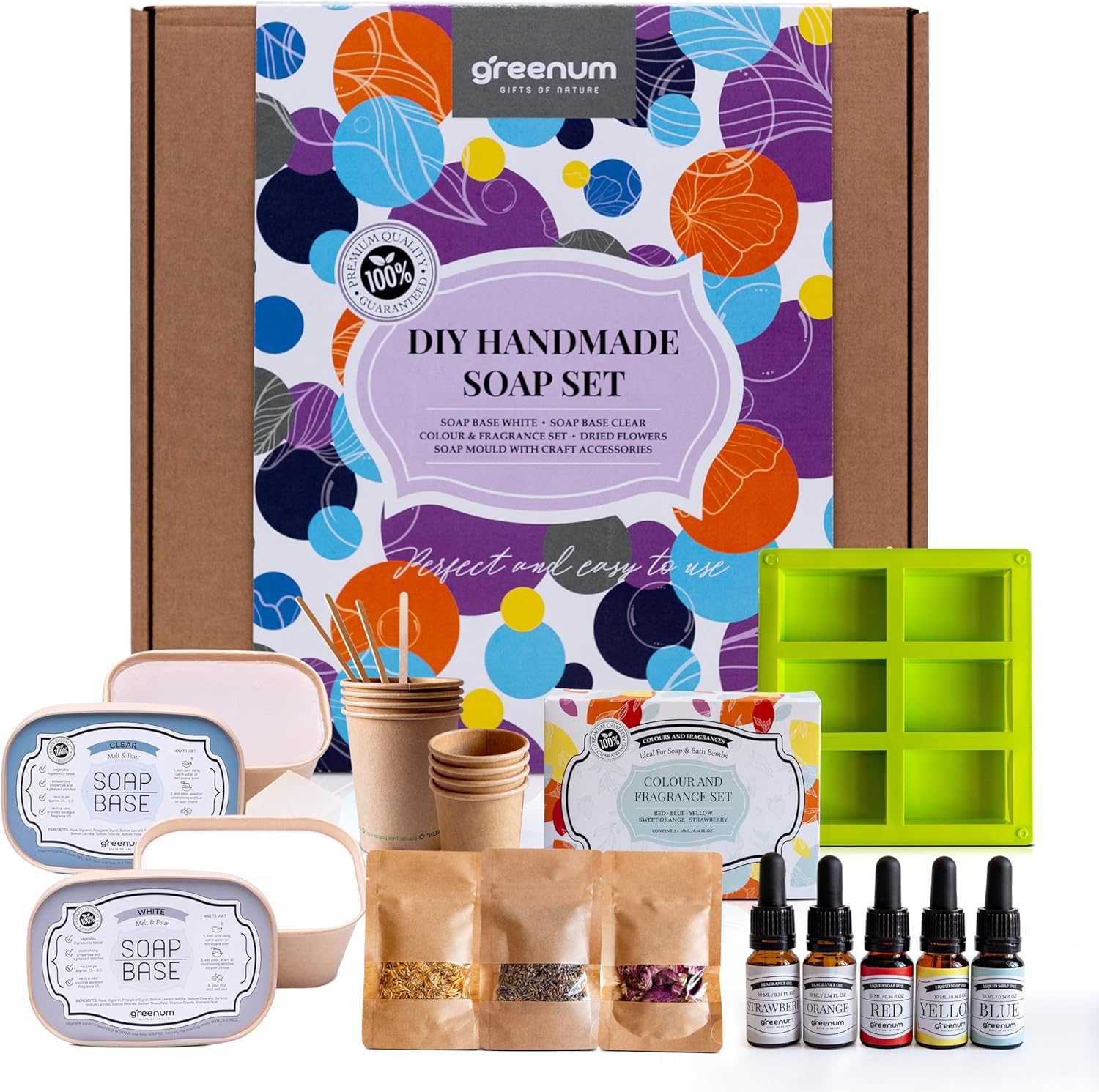 Šajā DIY ziepju gatavošanas komplektā ir viss nepieciešamais, lai izveidotu unikālas un košas ziepes. Komplektā ietilpst 500 g caurspīdīgas un 500 g šī sviesta ziepju bāzes – ideāli piemērotas individuālai radošai pieejai.