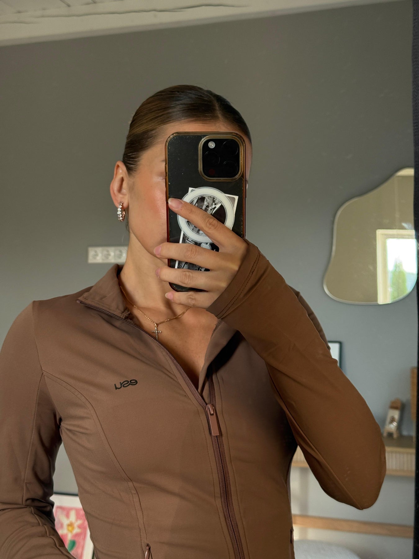 Mīksta, patīkama auduma jaciņa tavām aktīvajām dienām un brīvdienām. Izcila pastaigām, jogai, treniņiem vai tavai ikdienai. Kombinē to ar 'MOVE' biksēm vai jebkuriem citiem legingiem, šortiem vai jogas biksēm, kas tev jau ir. Krūšu daļā minimālistisks ESU logo.