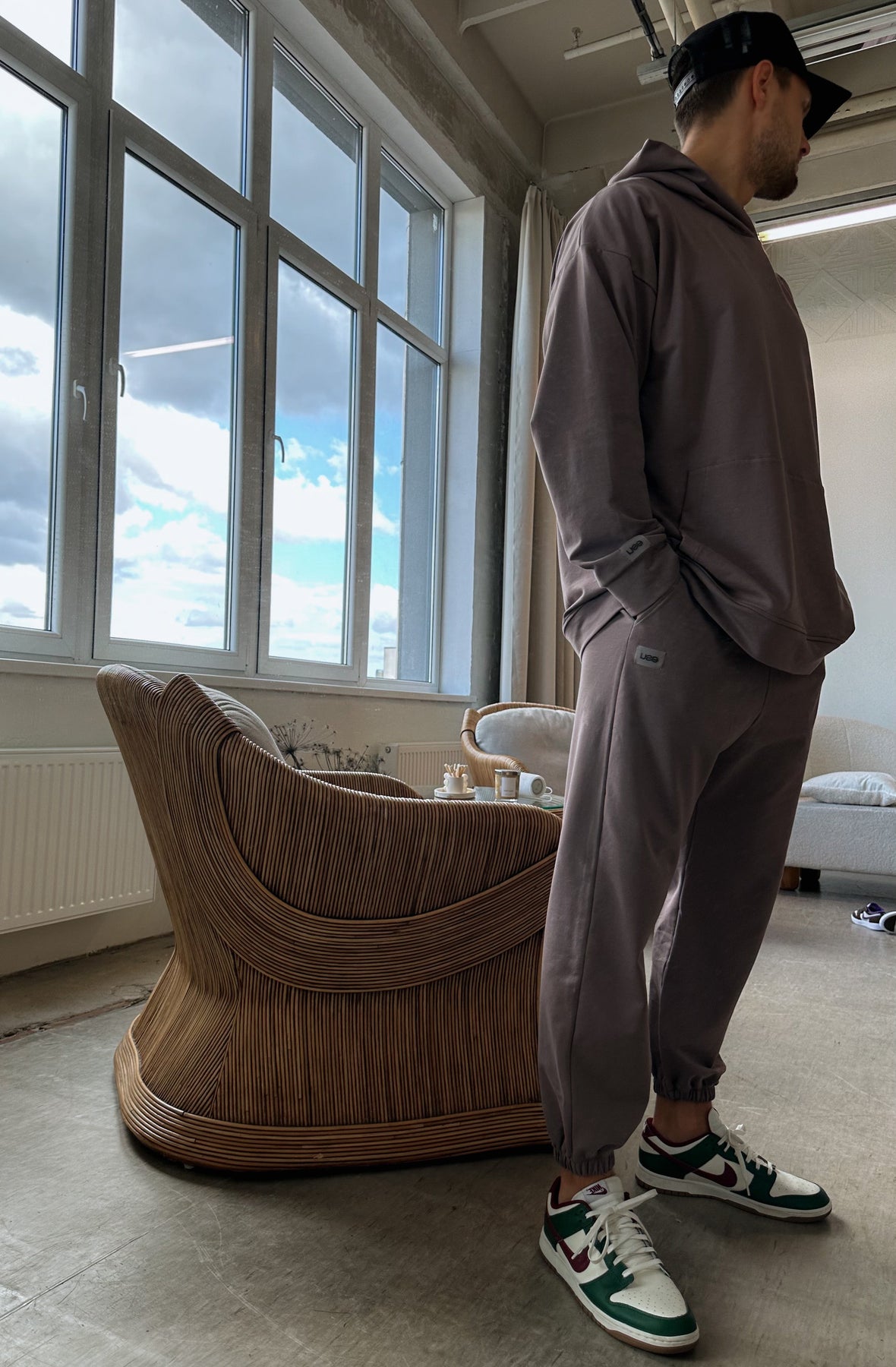 Unisex oversized mīkstas kokvilnas komplekts. Jūties silti, brīvi, ērti un arī gaumīgi mūsu Latvijā ražotajos brīvā un aizņemtā laika kostīmos. Elastīgs un ļoti patīkams audums jūsu pieskārienam.